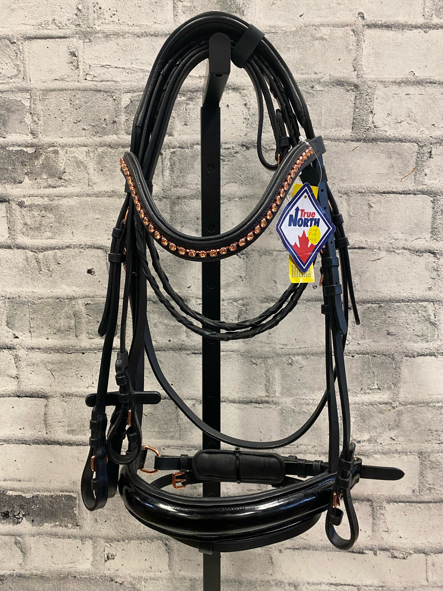 True North Patent Leather + Rose Gold Crank Nose Dressage Bridle + Reins XFull
